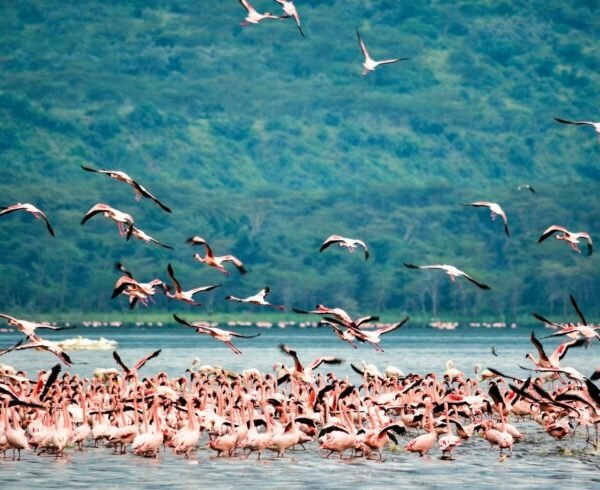 - Lake Nakuru: Witness a natural spectacle as thousands of flamingos tint the lake pink, with the added thrill of spotting rhinos and lions on its shores.